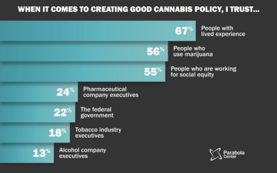 Published on Wednesday by the Parabola Center for Law and Policy and conducted in collaboration with the nonprofit research institute RTI International, the survey asked Americans to select which groups they most trust to craft good marijuana policy. Majorities trusted people with lived experience (67 percent), those who use marijuana (56 percent) or people working for social equity (55 percent).