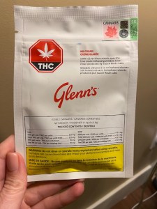 I recently tried Glenn’s Ice Cream solventless infused gummies. I love gummies, though I don’t like the potency limits on infused gummies in Canada. That doesn’t stop me from buying them though because I love to compare products on the legal market, knowing that one day, the overseers will relent and allow makers to include more gummies per package.