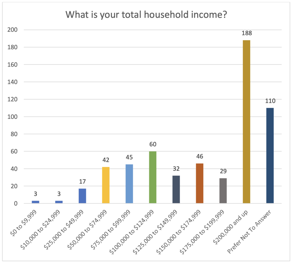 A survey of 575 adult-use licensees found that the plurality (188) were from high-income households, making $200,000 a year or more. Another 110 licensees said they preferred not to answer that question.