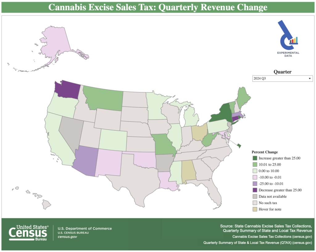 Cannabis excise tax for Q3 2024 compared to the previous quarter / U.S. Census Bureau